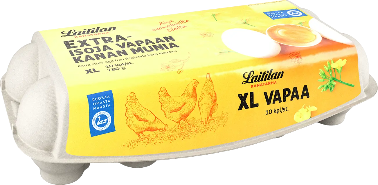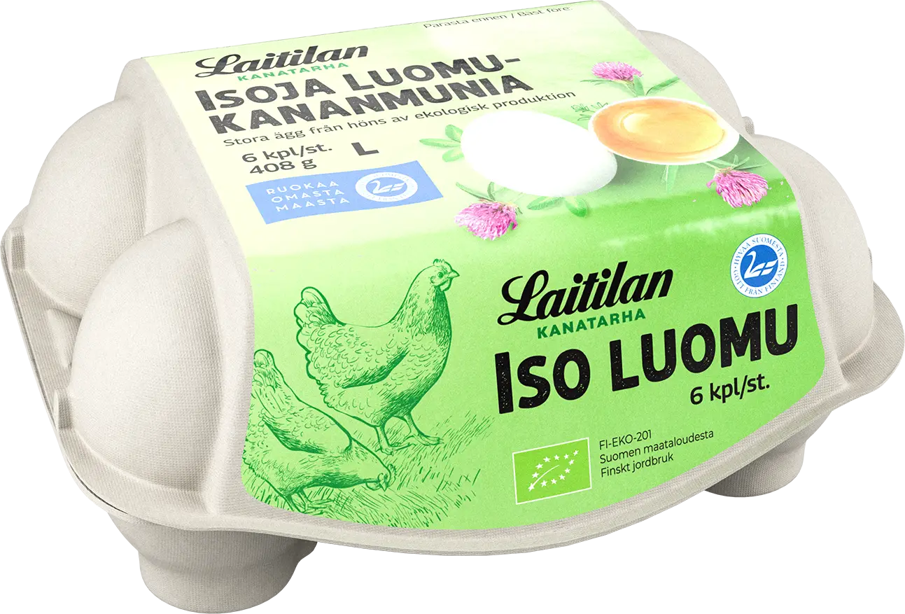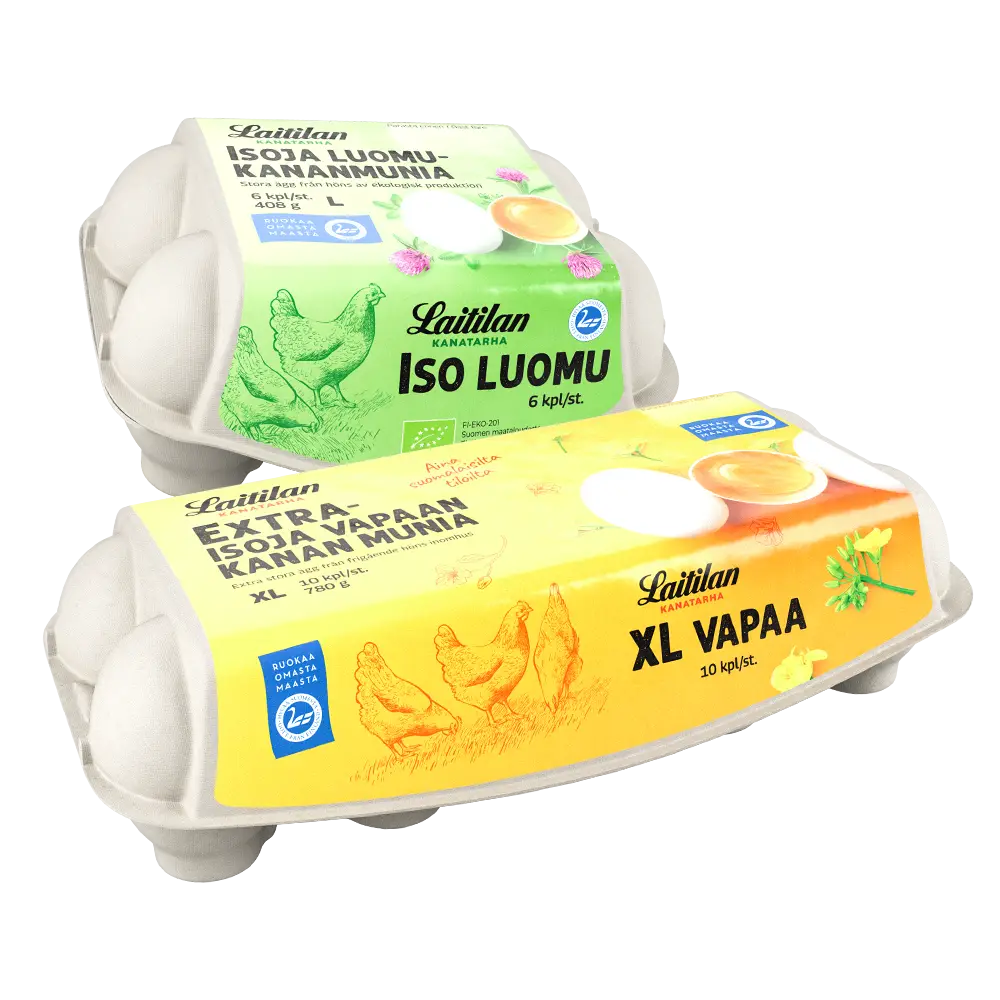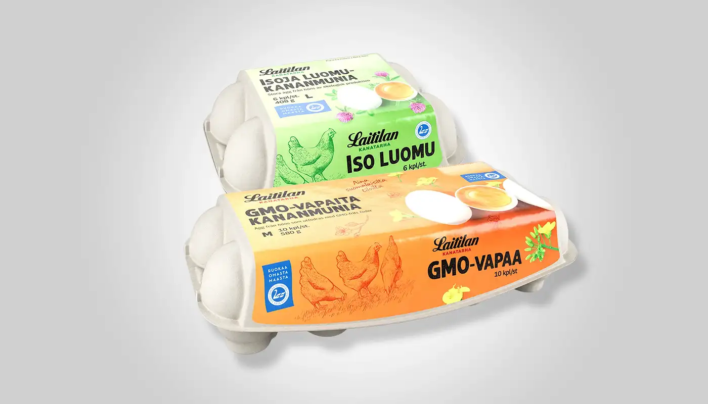 3D mallinnus ja tuotekuva kananmunakennoille Laitilan Kanatarhalle. Asiakas halusi kokeilla tuotteidensa 3D mallinnusta toistuvien etikettipäivitysten takia. Tarkoituksena nopeuttaa tuotekuvien luomista päivitysten jälkeen. Tuotesarjaan kuului useampi tuote joista oli eri kokoja. Kaikki tuotteet saatiin luotua mallintamalla vain 3 eri pakkausta. Asiakas toimitti pakkausmallit ja etikettitiedostot.